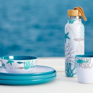 Design nautico perfetto da abbinare al resto della collezione di piatti in melamina e bicchieri sintetici