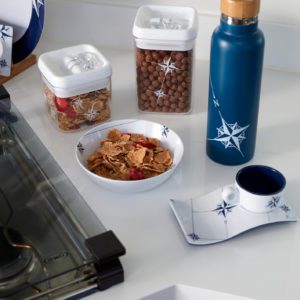 Design nautico perfetto da abbinare al resto della collezione di piatti in melamina e bicchieri sintetici