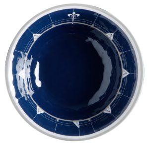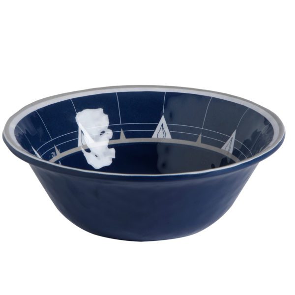 Ciotola in melamina della collezione Pacific, pensata per gli amanti della nautica dal gusto classico ed elegante. Il design della rosa dei venti nei toni del beige, del blu navy e del bianco rendono questo servizio da tavola in melamina un elemento essenziale per vestire la tavola con eleganza.