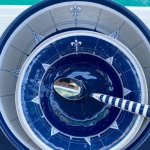 Ciotola in melamina della collezione Pacific, pensata per gli amanti della nautica dal gusto classico ed elegante.