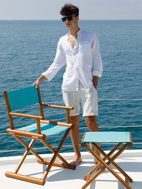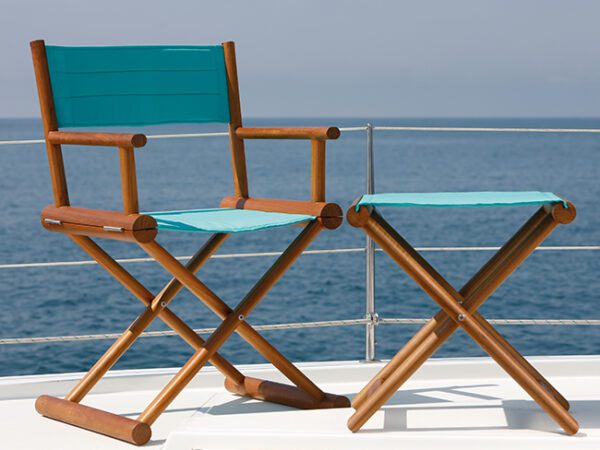 Gli sgabelli in teak sono ideali per le barche in quanto sono pieghevoli e occupano pochissimo spazio.
